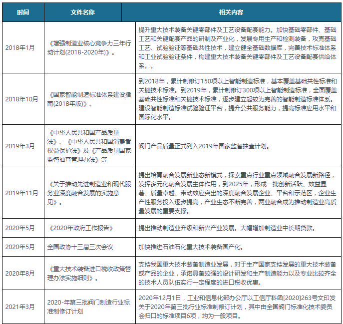 中国及部分省市阀门行业相关政策汇总